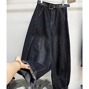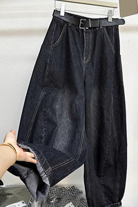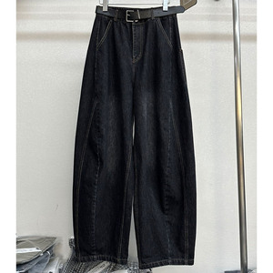 深圳2025新款南油女装欧货高腰显瘦百搭宽松显瘦弯刀阔腿牛仔裤女