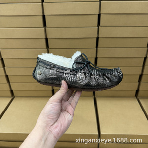 河桑村坡新款女冬蜥蜴纹一脚蹬乐福鞋懒人鞋
