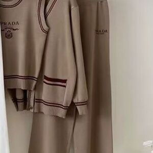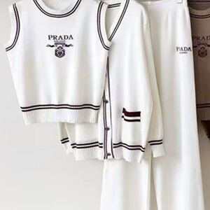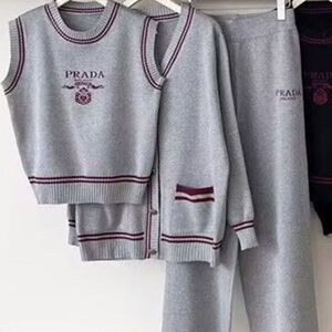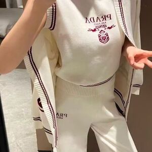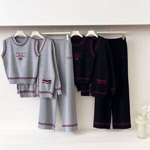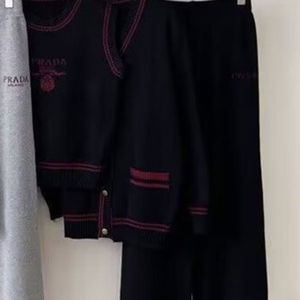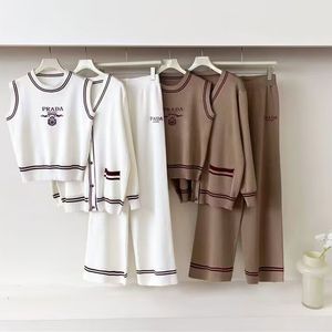 外贸欧美宽松三件套秋季2025针织开衫外套时尚字母套装上衣长袖新