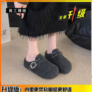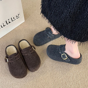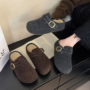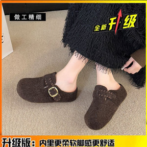 内增高厚底勃肯鞋毛毛拖鞋女外穿2025秋冬新款加绒保暖包头半拖鞋