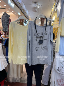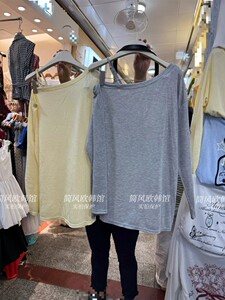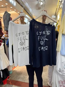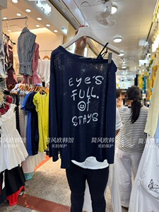 2025夏韩版时尚露肩圆领字母印花长袖T恤女宽松显瘦防晒衣上衣潮