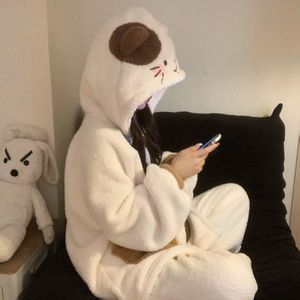 甜美三色小猫睡衣女秋冬季保暖珊瑚绒长袖长裤套装美少女家居服