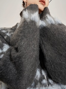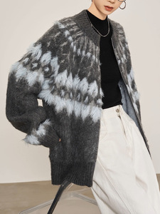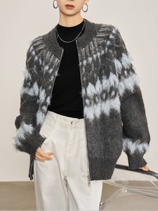 灰色复古提花费尔岛毛衣针织开衫女软糯高级感外套2025年冬季新款