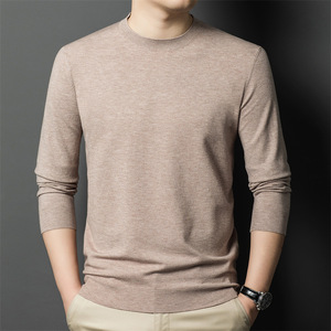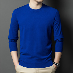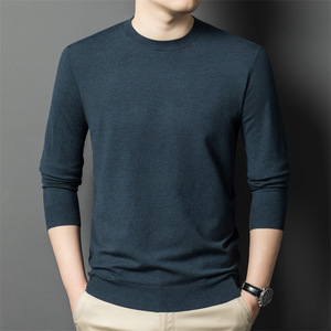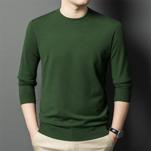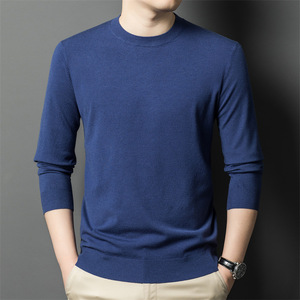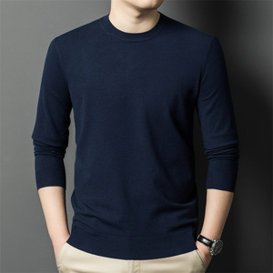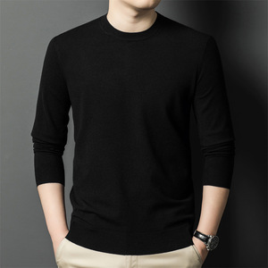跨境秋冬新款男士精纺毛衫圆领纯色300克针织毛衣保暖打底衫批发