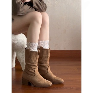 马丁靴小个子增高女靴2025春秋款高跟中筒短靴西部堆堆靴