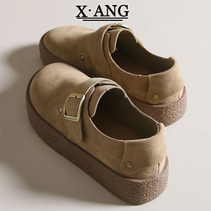真皮厚底全包勃肯鞋2025新款秋季鞋子女一脚蹬软底休闲单鞋乐福鞋