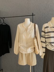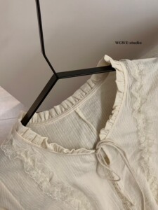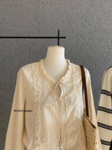 WGWE7289#十三行女装2025秋装新款系带花边设计感长袖小衫T恤上衣