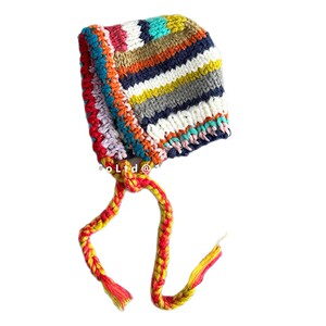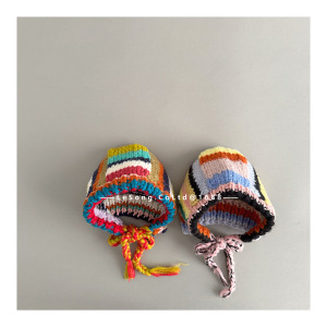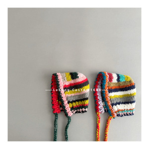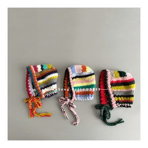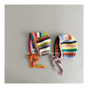儿童ins多巴胺彩色条纹针织护耳帽女童复古秋冬季保暖护耳包头帽