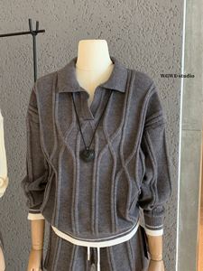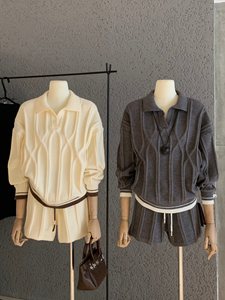 WGWE 7300广州十三行女装2025秋装新款小个子polo领毛衣+短裤套装