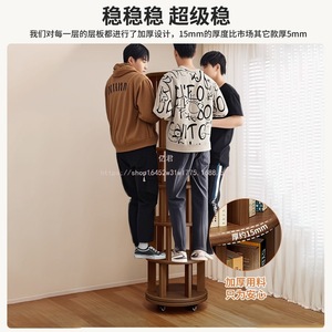 15MM加厚实木 可360旋转+可移动 加宽 【带轮圆款】原木色六层44*197.8CM旗舰款