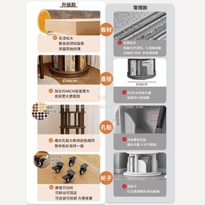 15MM加厚实木 可360旋转+可移动 加宽 【带轮圆款】原木色二层44*71.8CM旗舰款