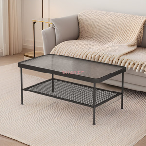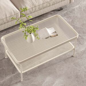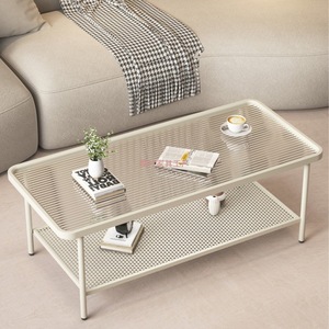 现代长虹钢化玻璃茶几小户型轻奢客厅家用长方形双层收纳极简风