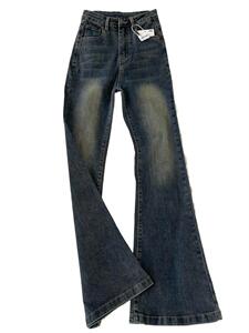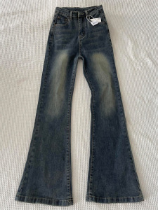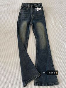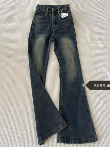 大码复古做旧水洗微喇叭牛仔裤女秋季新款高腰弹力显瘦拖地马蹄裤