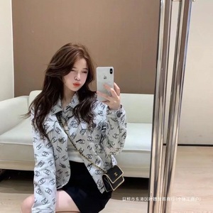 高定!25早春新款经典老花满印字母休闲短款 牛仔外套女夹克上衣潮