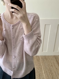 之言 25秋冬季女款羊毛衫韩系高级感手工绣花羊驼绒针织开衫毛衣