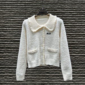 mm 针织开衫毛巾料翻领针织开衫女25秋冬9月新品公主风娃娃领开衫