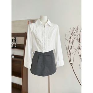 塞纳2025秋季新款短款修身衬衫+褶锏裙裤套装