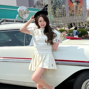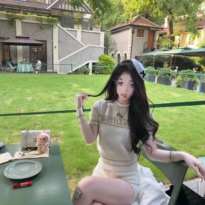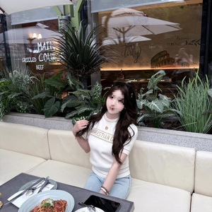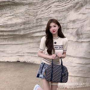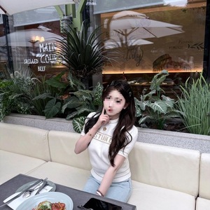 南油(高版)2025新款提花夏季针织衫五角星字母圆领短袖修身上衣女