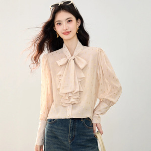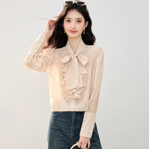 法式蝴蝶结飘带领碎花长袖衬衫女轻奢高级感气质雪纺衬衣别致上衣