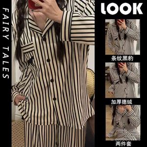 秋冬季睡衣女德绒加厚保暖卡通可爱兔子韩版舒适休闲风家居服套装