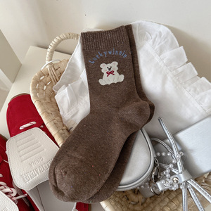 秋冬季韩版卡通黑色猫咪中筒袜点子纱女士袜学院风中筒袜可爱甜美