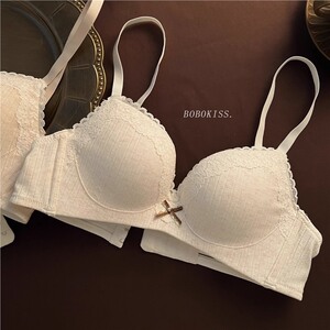 蕾丝甜美碎花内衣女无钢圈收副乳小胸聚拢收副乳舒适透气文胸罩夏