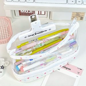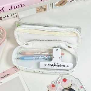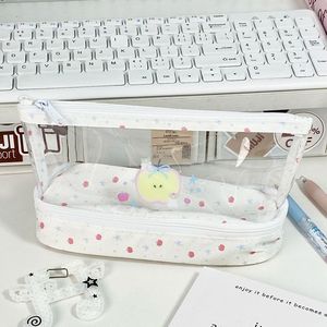 爆款薄荷星巧pvc透明笔袋ins创意文具收纳袋学生大容量双层笔袋