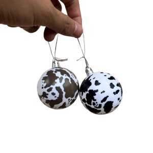 跨境圣诞球奶牛印花图案圣诞节动物主题圣诞西部乡村风圣诞装饰品
