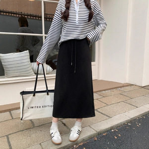 2025秋装新款胖mm大码女松紧腰显瘦抽绳腰大摆百搭后开叉半身裙