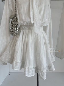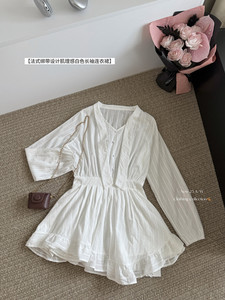 EGGKA肌理感白色长袖连衣裙秋季新款法式绑带设计感气质显瘦短裙