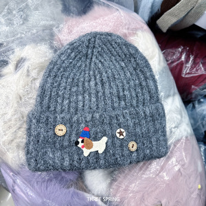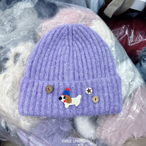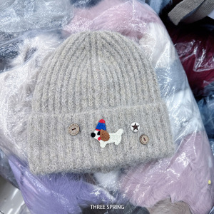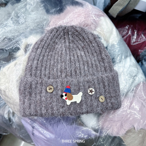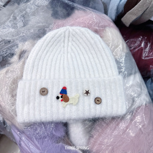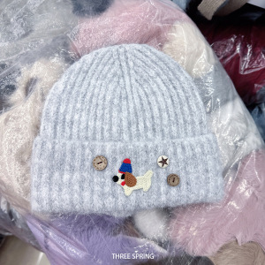 批发韩国2025年秋冬新款韩版卡通小狗针织帽女ins显脸小毛线帽子