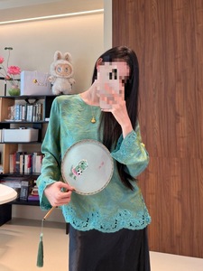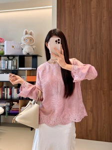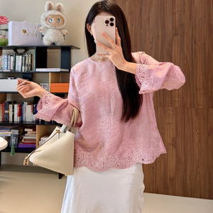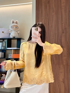 重工绣花人丝混纺提花上衣女2025新款浮光精致通勤百搭气质衬衫