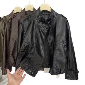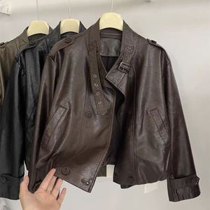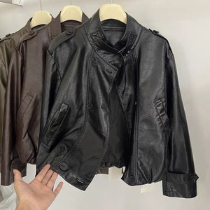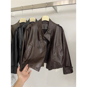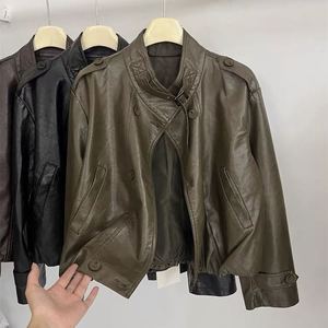 时尚立领PU皮衣外套女短款2025秋季新款高级感宽松显瘦机车皮夹克