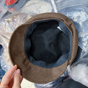 批发韩国2025年秋冬新款大檐褶皱高级小众报童帽大头围显脸小盆帽
