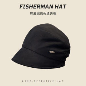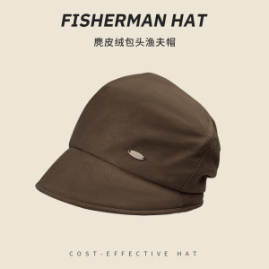 日系复古麂皮绒包头渔夫帽子女款秋冬季百搭保暖护耳显脸小堆堆帽