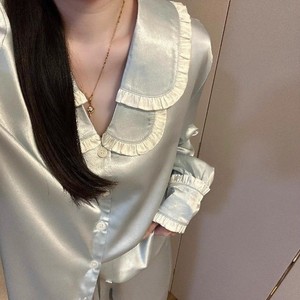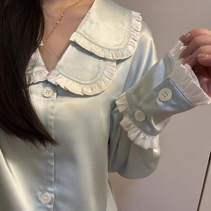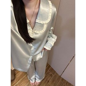 韩系高级感双领冰丝长袖睡衣女秋季宽松舒适凉感长裤家居服套装潮