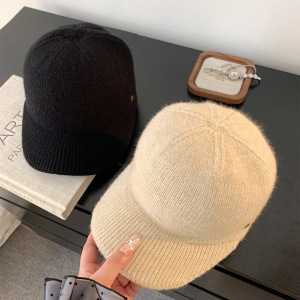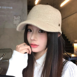 赵露思同款平顶针织鸭舌帽女秋冬百搭显脸小马术帽大头围毛线帽子