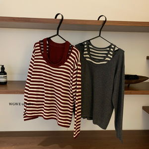 WGWE7179#十三行女装2025秋装新款撞色背心叠穿娄漏肩针织衫上衣