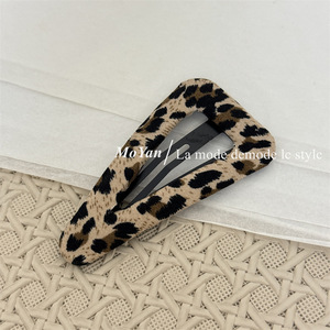 韩系豹纹布艺三角BB夹早秋新款甜酷辣妹刘海夹碎发夹复古气质发卡