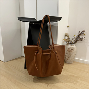 时尚串带绑结设计大容量单肩包新款通勤复古气质托特大包