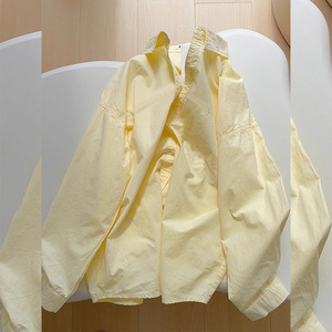 奶黄色长袖衬衫女春秋小个子外搭宽松慵懒风叠穿衬衣外套休闲上衣