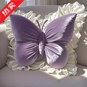 新款公主ins蝴蝶办公室靠枕卧室蕾丝车载沙发靠垫床上家居特大号