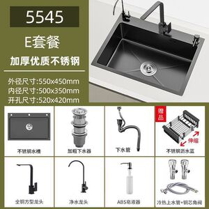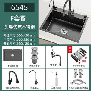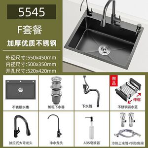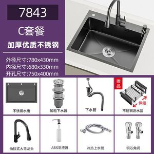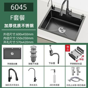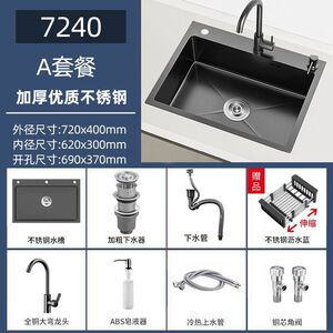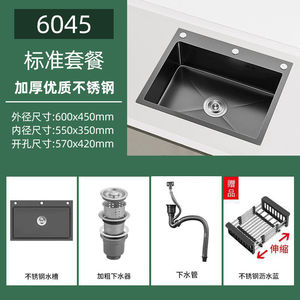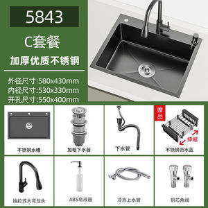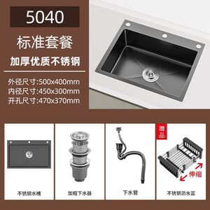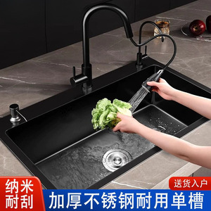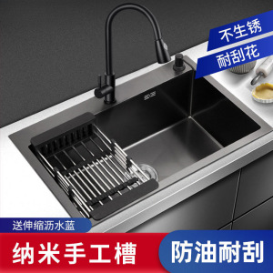 厨房家用加厚304不锈钢水槽黑色纳米大单槽洗菜盆手工谁槽台下盆