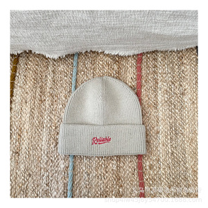 韩版英文字母刺绣卷边纯色针织帽情侣冬季洋气护耳毛线帽穿搭冷帽