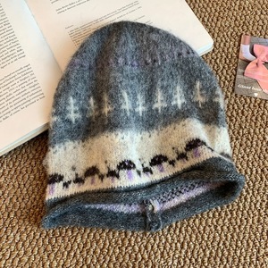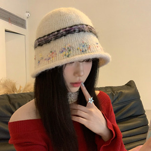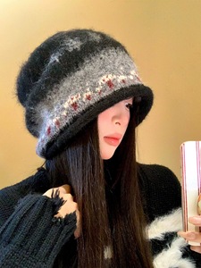初冬老花卷边针织帽女秋冬休闲显脸小毛线盆帽保暖护耳包头渔夫帽