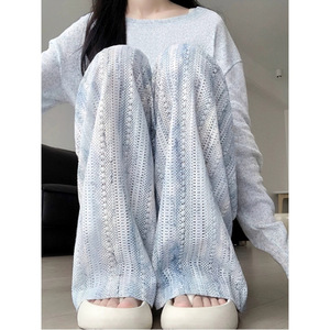 2025胖妹妹大码扎染镂空休闲裤女秋新款高腰宽松显瘦垂感阔腿裤