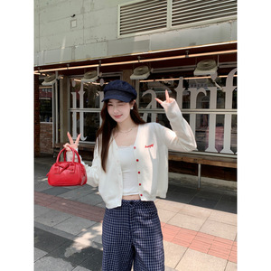 白色针织开衫外套女2025新款秋季穿搭高级感外搭毛衣韩系早秋上衣