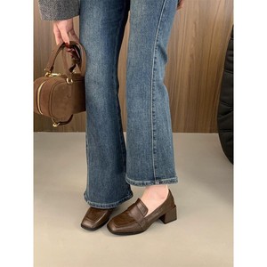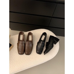 黑色乐福鞋方头懒人一脚蹬粗高跟小皮鞋百搭法式玛丽珍单鞋女中跟