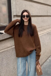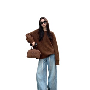 棕色软糯套头宽松慵懒风感超好看毛衣女秋冬加厚针织上衣外穿