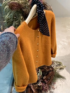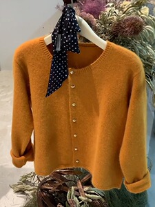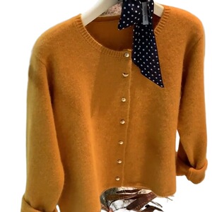 感橘色圆领针织开衫外套女春秋季浣熊绒毛衣外穿宽松短款上衣